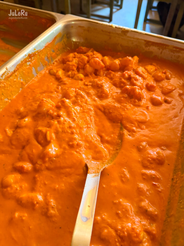 Zu Mittag gab es dann von der Küche leckeren Gnocchi-Auflauf und Obst-Quark zum Nachtisch, dass alle satt und zufrieden in die Mittagspause gehen konnten.