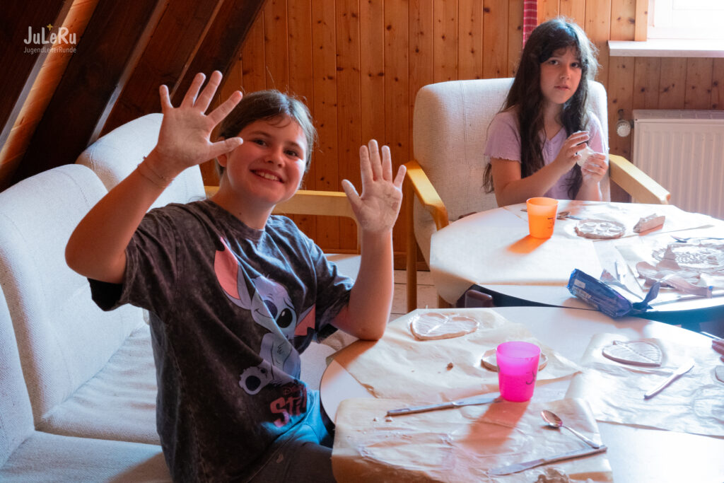 In den Workshops war wieder viel los: Nicht nur gab es mehrere riesige Runden Werwolf, auch der Kreativ-Workshop hat jede Menge coole Dinge aus lufttrocknendem Ton gezaubert!
