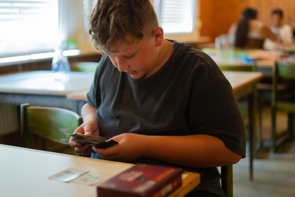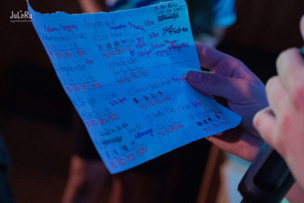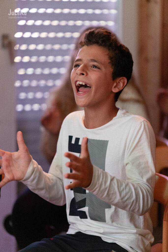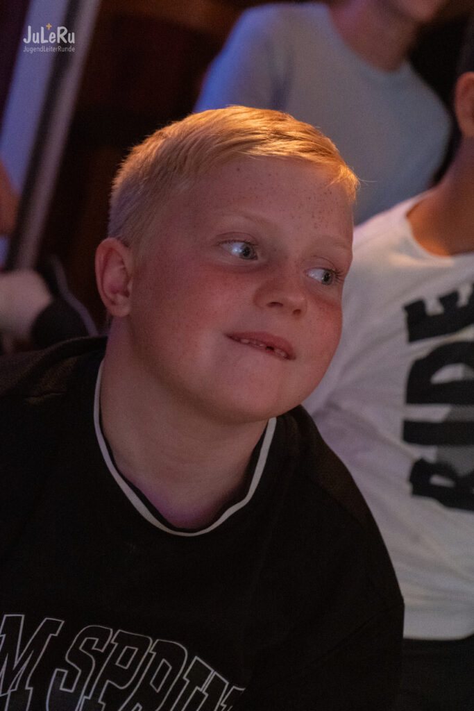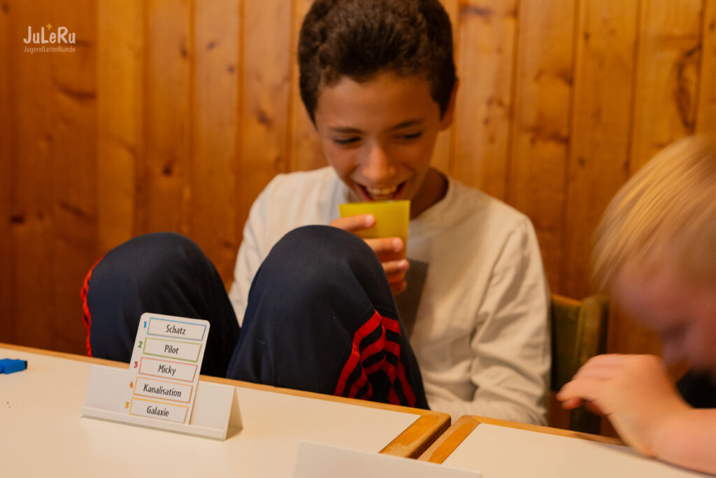 Abends wurde dann das Angeberspiel gespielt, wo die Kinder Punkte für ihr Team sammeln konnten, indem Sie sich selbst richtig einschätzen. Es gab verschiedene Kategorien, wie „In der Ruhe liegt die Kraft“ oder „Rechter Winkel“ und es wurde immer je ein Kind aus jeder Gruppe ausgewählt, um anzutreten. Aber Achtung, wer zu viel angibt verliert!