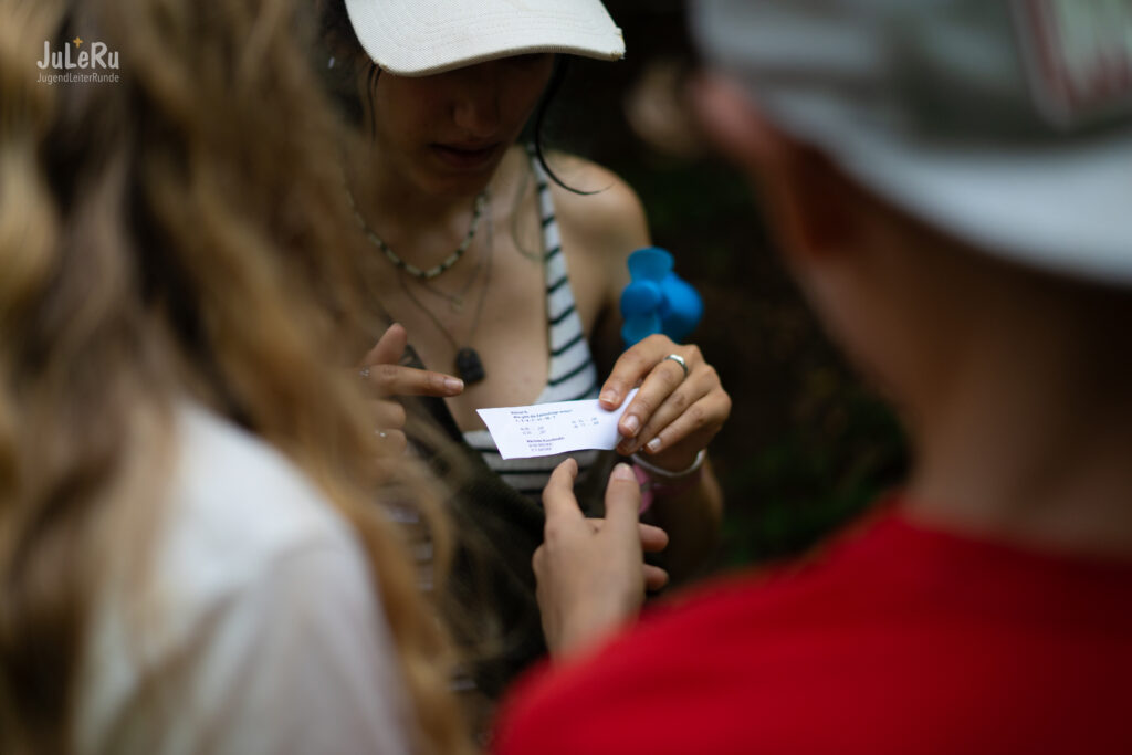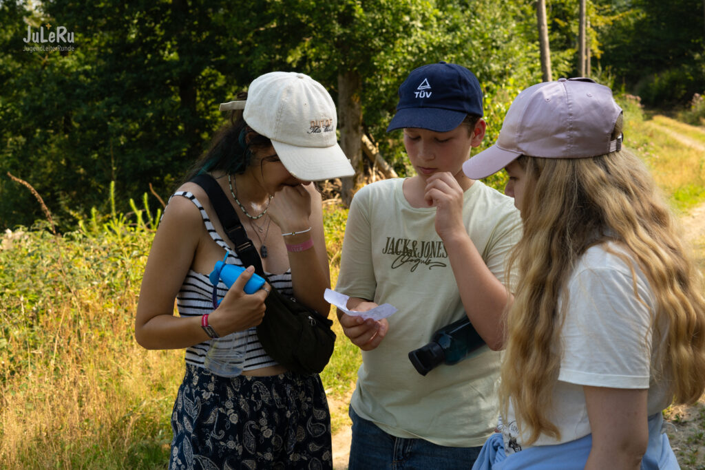 Heute wurde eine mysteriöse Holzkiste mit einem vierstelligen Code gefunden. Um herauszufinden, was sich darin befindet, haben sich die Teilnehmer mit den Leitern auf die Suche nach Hinweisen für den Code zu finden. Die Kinder sind also in vier Gruppen Koordinaten gefolgt, um jeweils eine Stelle des Codes herauszufinden. Nach vielen Rätseln und einer Wanderung über Stock und Stein haben sie den Safe geknackt und den Inhalt, bestehend aus Kompassen, durften Sie natürlich behalten.